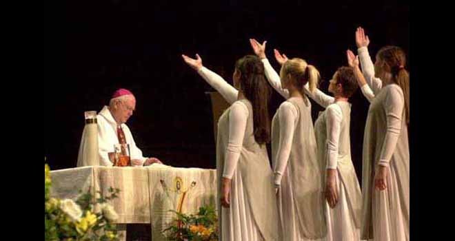 Kdyby někdo s něčím takovým vystoupil před Boží lid před sto lety, byli by ho bez pardonu vyhnali. Aby Boží lid něco takového strávil anebo dokonce uvítal, musel být nejdříve náležitě omámen, musela nastoupit narkóza, nikoliv náhlá, ale pomalá a plíživá, a touto narkózou byl rafinovaný opiát Novus Ordo, který zvrátil charakter chrámů a bohoslužeb. Nasytil obřady všemožnými opiáty, odstranil všechno nepohodlné, omezil všechno nepříjemné a náročné a povolil uzdy a kázeň. Z bohoslužeb se stala líbivá show, odstranila se velesvatyně, z oltářů se staly hodovní stoly, z hříchů poklesky a slabosti, hlavním centrem pozornosti se stalo publikum, kterému je třeba se stále nějak zavděčovat. Skutečná služba Bohu upadla do zapomenutí, do nenávisti a opovrhování.