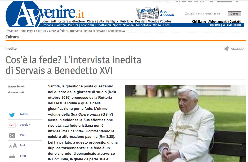 Benedikt XVI. poskytl interview listu Avvenire, ve kterém odpovídá