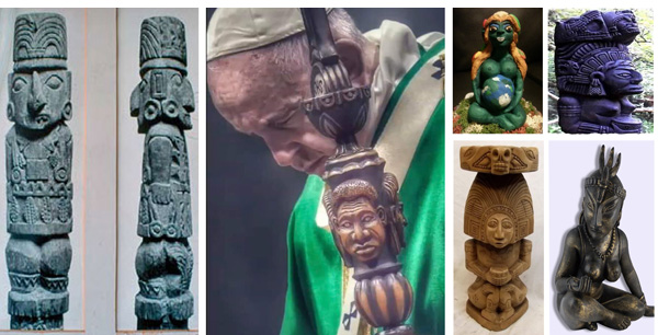 Bergoglio zaměnil svou pastýřskou hůl za indiánský totem bez Ukřižovaného Spasitele.