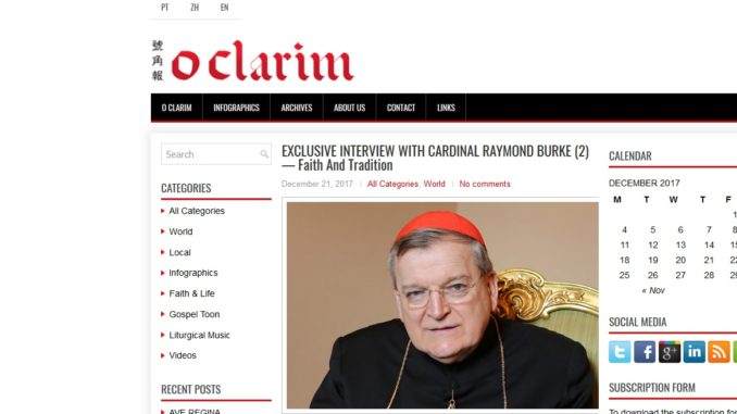 V interview pro týdeník O Clarim prohlásil kardinál Burke, že církev nemá zapotřebí, aby se někomu omlouvala za svou nauku o sexuální morálce.