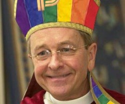 Prohlašoval, že chce vést praktikující homosexuály ke Kristu. Jako homo-aktivista se zasazoval o zavedení homo-sňatků. Když k tomu v roce 2010 v New Hampshire došlo, ihned své homo-partenrství jako první biskup „legalizoval sňatkem“. Nyní oznámil, že se se svým partnerem rozvádí. Stal se tak nositelem dvojího primátu.