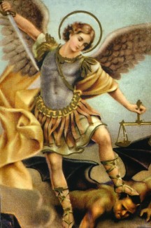 "Svatý Michaeli, archanděli, braň nás v boji. Proti zlobě a úkladům ďáblovým buď naší ochranou. Kéž ho Bůh ovládne, pokorně prosíme. A Ty, kníže nebeského vojska, svrhni satana a jiné zlé duchy, kteří ke zkáze duší procházejí světem, Božskou mocí do pekelné propasti. Amen."