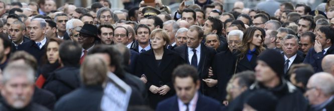 při pohledu na smuteční pochod Paříží oslavoval Evropu, která se »pod Bastilou znovu probudila«, tvrdila postmoderní filozofka Julia Kristeva, která je velice drahá kardinálu Ravasimu, v listu La Repubblica 13. ledna 2015, že »ono osvícenské náměstí zachránilo Evropu« a že »tváří v tvář nebezpečí, že se stanou abstraktními pojmy, vtělily se volnost, rovnost a bratrství do milionů lidí«.