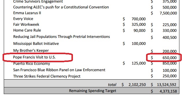 Papež byl v USA 22. - 27. září 2015. Komu byly uvedené prostředky konkrétně určeny, není zatím jasné, ale rozbor Sorosových dokumentů je teprve na začátku.