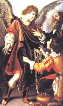 Slavný Archanděli, svatý Rafaeli, který jsi starostlivě chránil Tobiášova syna na jeho obtížné cestě a vrátil ho jeho rodičům bez úhony spojeného s jeho důstojnou snoubenkou, buď věrným vůdcem také pro nás, uzdravuj naše neduhy, abychom překonali bouře a nástrahy tohoto světa a došli šťastně do blaženého přístavu věčnosti. Svatý Rafaeli, stůj při nás spolu se všemi anděly, pomáhej nám a přimlouvej se za nás. (viz)