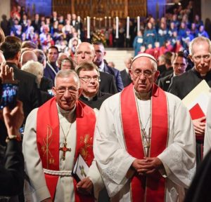 Mounmib Younan,, předseda Světového luterského svazu, a FRantišek v Lundu 31. 10. 2016