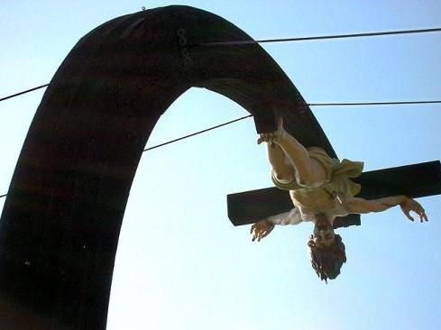 Brescia (Itálie) – Poblíž severoitalského města Brescie dnes třicetimetrový kříž usmrtil mladého turistu. Skulptura byla neobvykle zakřivená dopředu, takže postava ukřižovaného Ježíše hleděla tváří k zemi. Krucifix vznikl při příležitosti návštěvy papeže Jana Pavla II. v Brescii v roce 1998. Neštěstí se odehrálo jen tři dny před jeho svatořečením.
