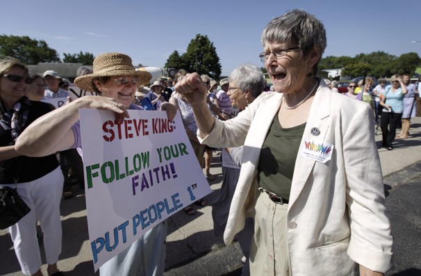 Jedná se o transsexuála a homo-aktivistu, vyznavače homosexuality a protestantského biskupa Gene Robinsona a Simone Campbellovou, řeholnici a bojovnici za právo ženy na potrat, která kritizuje Svatý stolec pro jeho postoj k eutanázii.