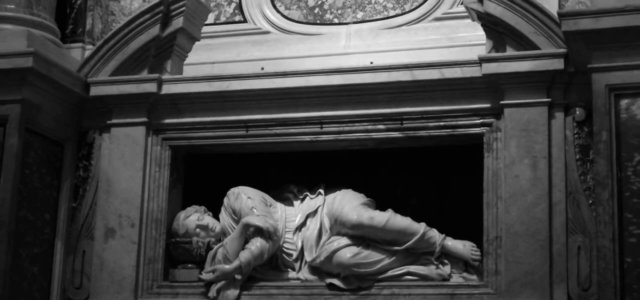 Samotný lev odložil svou divokost a pokojně jí leží u nohou: teprve meč, Martino, který ti nese smrt, tě uvádí mezi nebeské sbory.