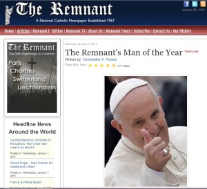 Z těchto a mnoha dalších obdobných důvodů byl papež František vyhlášen listem The Remnant za Muže roku 2014. I když to jistě nemá v úmyslu, ukazuje František katolickému světu budoucí výsledek hnutí, které bylo zahájeno problematickými texty koncilu, které začalo ničením římského ritu a pokračovalo ochromením víry „ekumenismem“ a „dialogem“, velkým úpadkem morálky, povolání a zbožnosti.