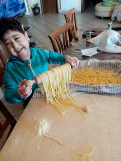 odvahu a naději lidem kolem sebe. Nedělá to velkými slovy, ale malými, jednoduchými každodenními gesty: společně uvaří čerstvé těstoviny, vezme krásný ubrus na výzdobu místnosti nebo zazpívá píseň, která všechny rozveselí, zpěv je vlastně jeho vášní už od dětství.