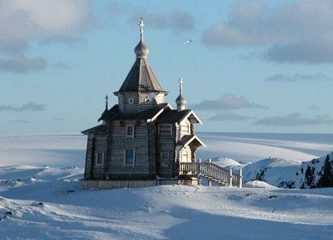 Ruští pracovníci na stanici v Antarktidě nejsou zbaveni duchovní služby. Pravoslavný kněz Sofronij Kirilov zde slouží Bohu i věřícím. Jako zvláštní vyslanec moskevského patriarchy žije na ostrově Krále Jiřího. Je jedním ze stovky osob, které žijí na této zeměpisné šířce i v zimě, i když zde teploměr klesá na – 25o. V létě se pohybuje teplotní průměr kolem nuly. Ostrov má 95 x 25 km. V létě zde žije kolem 500 lidí, převážně v chilské osadě Las Estrellas (Hvězdná vesnice).