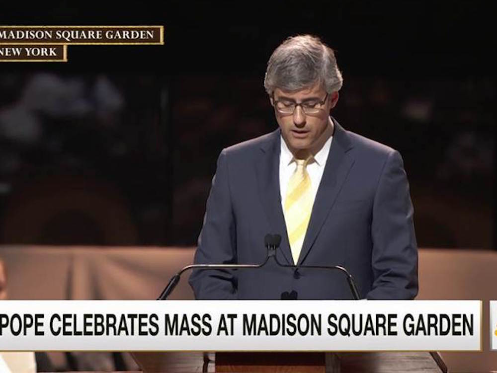 Při papežské mši 25. září na stadionu Madison Square Garden v New Yorku byl jako lektor prvního čtení vybrán Mo Rocca, herec a reportér známý jako vyslovený protivník katolické nauky v oblasti homosexuality a velký zastánce homo-sňatků. Když stát New York zavedl 2011 sňatky homosexuálů, napsal v nadšení: „U této historické události musí člověk být... je to nezapomenutelné a dojemné“. O změně jeho přesvědčení a postojů není nic známo,