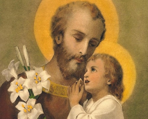Slavení svátku sv. Josefa 19. března (jako první byli benediktini 1003, za nimi servité 1324 a františkáni 1399; nakonec bylo po podpoře Pia V. zavedeno jako závazné 1621 Řehořem XV.) znamená vzdávat liturgickou úctu patronu univerzální církve a obhájci rodiny. Dnes více než kdy jindy je třeba vzývat jeho přímluvu jak pro jednu tak pro druhou skutečnost. Panně Marii se prokazuje kult hyperdulia (nade všechny svaté) a sv. Josefo
