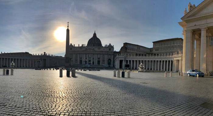 Nevíme, jaké budou politické, ekonomické a sociální důsledky koronaviru, ale zvažujeme v těchto dnech důsledky pro Církev. Zdá se, že se nadzvedla opona: je to hodina prázdnoty, stádo je zbaveno svých pastýřů. Náměstí Svatého Petra, prázdné o Květné neděli, zůstane prázdné i o neděli velikonoční. »Svatý Otec – oznámil Vatikán – bude slavit obřady Svatého týdne u oltáře katedry v bazilice Sv. Petra, bez účasti lidu v důsledku mimořádné situace, jaká nastala z rozšíření pandemie Covid-19.