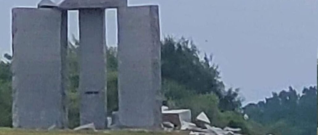 Washington) Záhadné a proslulé Georgia Guidestones byly částečně zničeny výbušninou a poté z bezpečnostních důvodů strženy. Struktura, která pod rouškou filantropie propagovala nelidskou ideologii, již neexistuje.