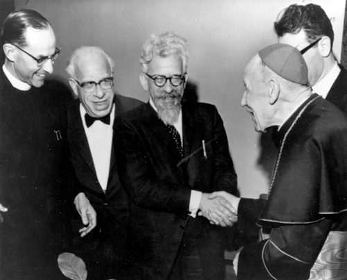 Kardinál Bea s rabíny G. Mindou a A. J. Heschlem