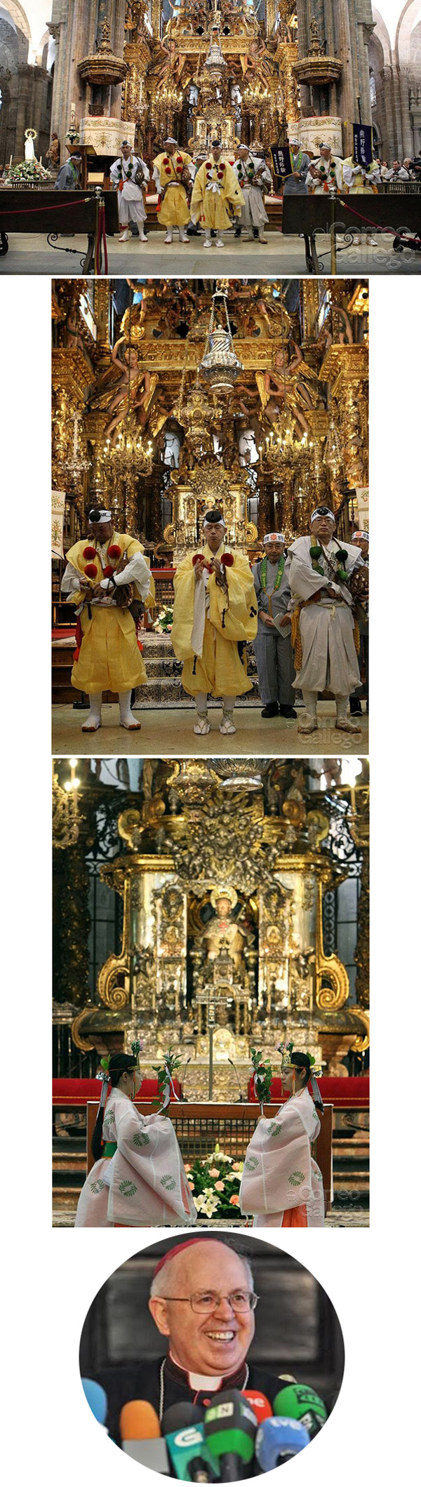 13. května 2014 povolila katolická duchovní správa poutní katedrály ve městě Santiago de Compostela delegaci 30 šintoistů a buddhistických mnichů z Japonska, aby před hlavním oltářem baziliky slavili svůj pohanský rituál v tomto významném místě katolicismu.